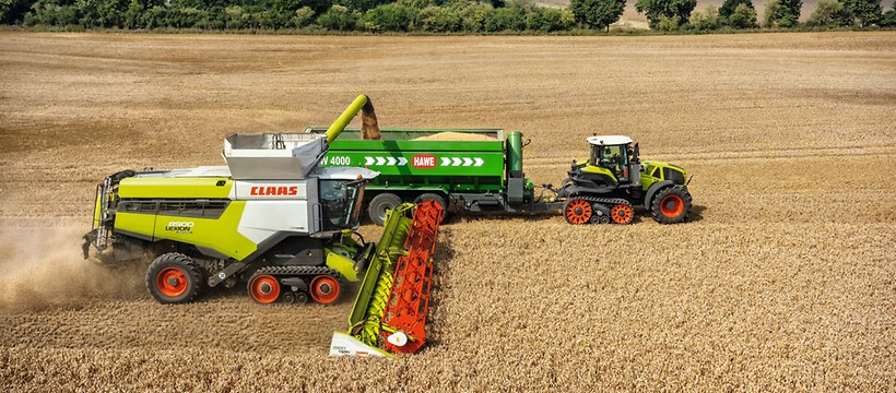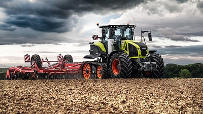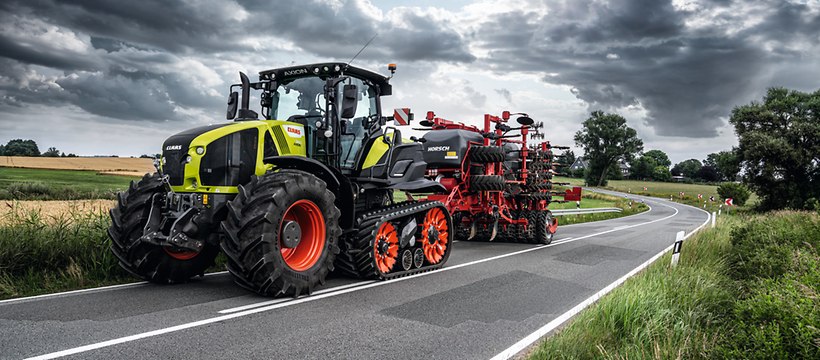 CLAAS introduce l’ AXION 960 TERRA TRAC (445 cv / 327 kW) e l’ AXION 930 TERRA TRAC (355 cv/261 kW) – I primi trattori semicingolati con sospensione idropneumatica. L’innovazione principale consiste nel sistema cingolato TERRA TRAC, basato sulla tecnologia che CLAAS ha utilizzato con le mietitrebbie per oltre 20 anni. Il concetto del semi trattore TERRA TRAC offre una generosa flessibilità. Fornisce grande potenza indipendentemente dalle condizioni del suolo e consente di essere implementato con attrezzi agricoli, trainati ad una velocità di lavoro molto bassa.Grazie ai cingoli e assale anteriore sospeso, l’ AXION 900 TERRA TRAC unisce i vantaggi di un trattore cingolato e in termini di trazione e protezione suolo, al confort di un trattore standard convenzionale . Grazie ai suoi rulli singoli sospesi, il sistema a cingolatura TERRA TRAC garantisce un ottimo contatto col suolo su una massima superficie, in ogni momento. Ciò rende la guida dell’AXION 900 TERRA TRAC confortevole ed efficiente sia su strada che su campo, anche ad elevate velocità, fino a 40 km/orari.